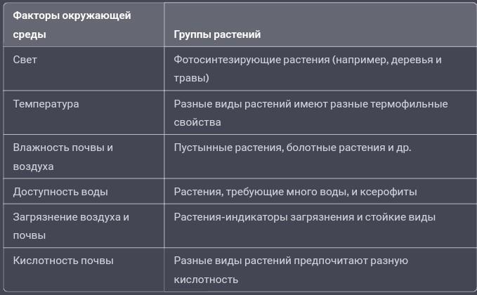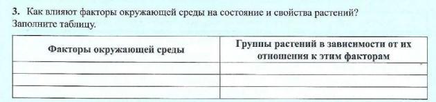 3. Как влияют факторы окружающей среды на состояние и свойства растений? Заполните таблицу. Факторы окружающей среды Группы растений в зависимости от их отношения к этим факторам