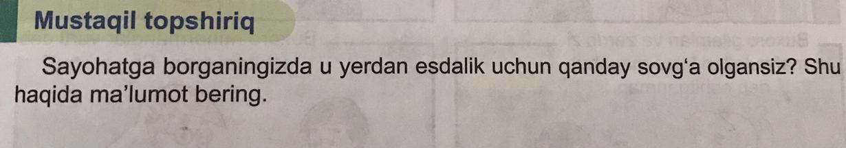 Sayohatga borganizda u yerdan esdalik uchun qanday sovga olgansiz? Надеюсь ответ будет в эти 2 часа