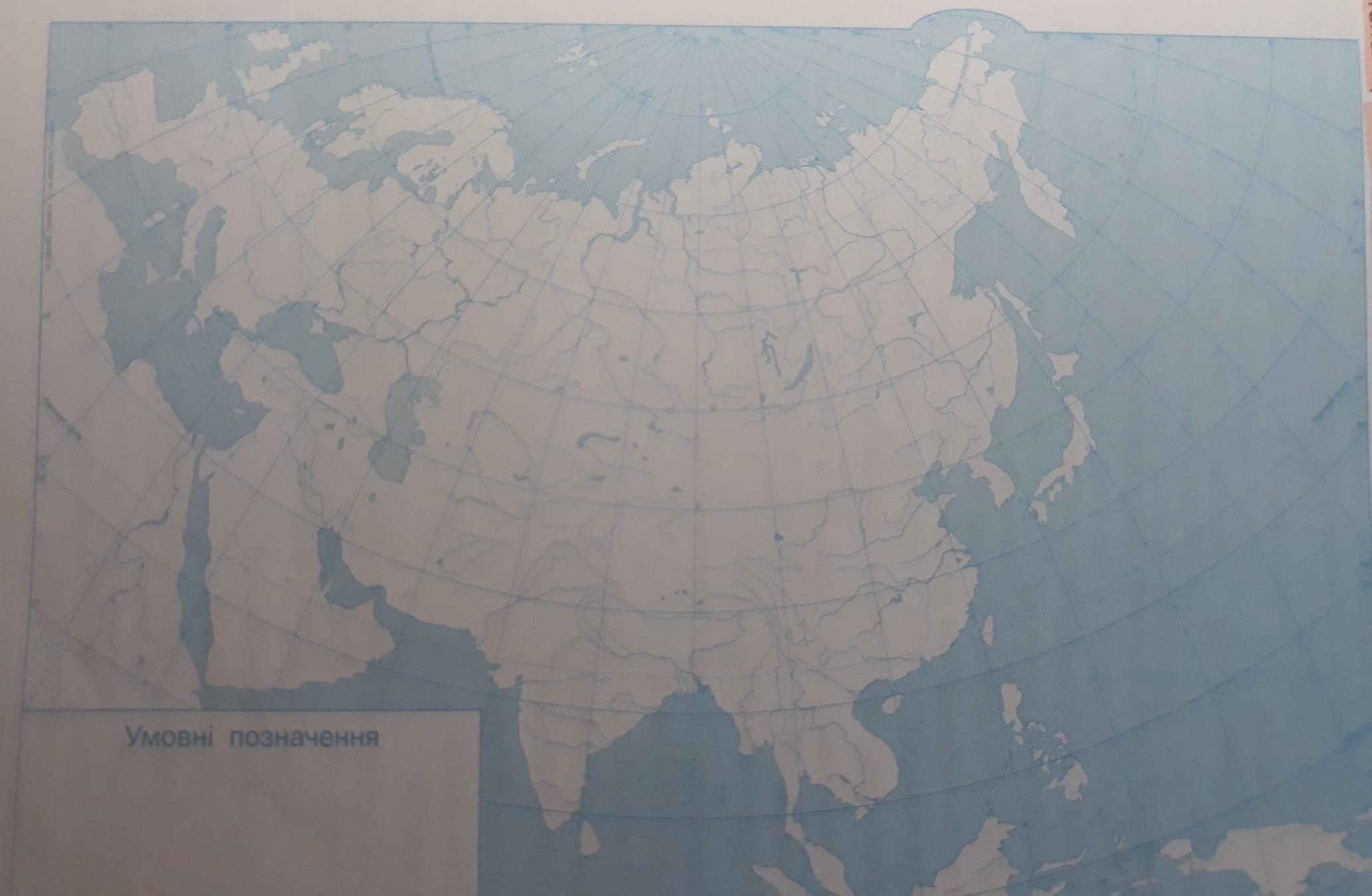 4. Познач на контурній карті Євразії відповідними кольорами області докембрійських і підпиши такі географічні об'єкти: рiвнини Східноєвропейська та Велика Китайська; плоскогір'я Середньосибірське й Декан.