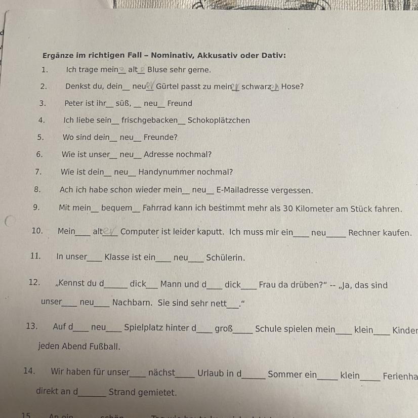 Ergänze im richtigen Fall - Nominativ, Akkusativ oder Dativ: