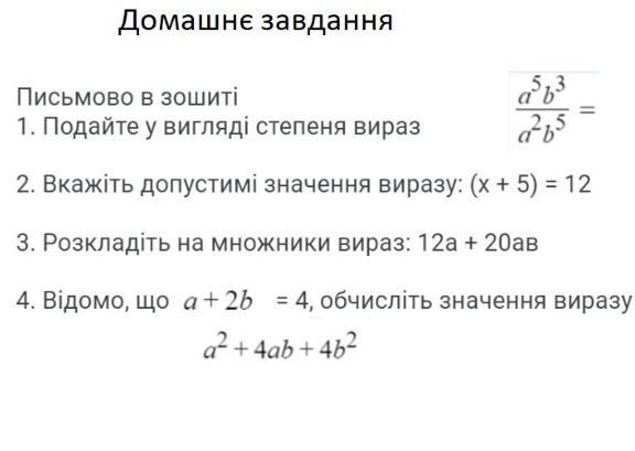 1) Подайте у вигляді степеня вираз (a^5b^3)/(a^2b^5):