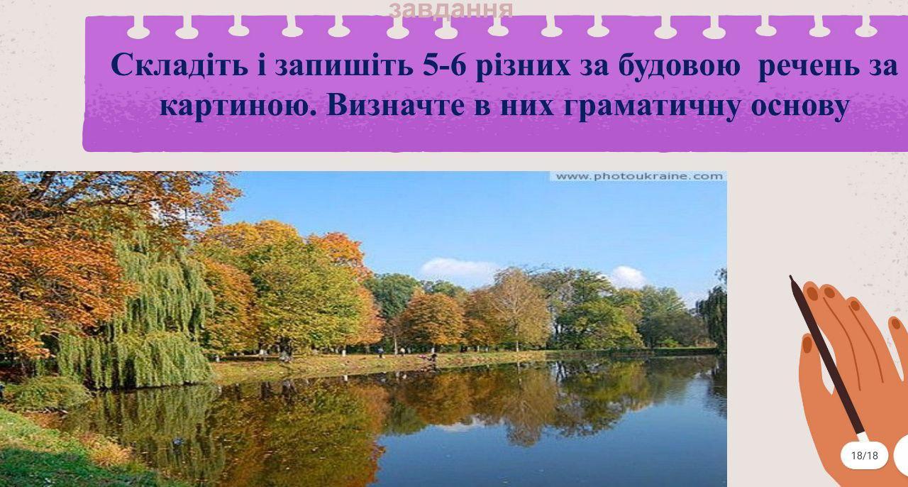 гурту. Граматична основа: підемо. Якщо завтра буде сонячно, ми підемо на прогулянку.Граматична основа: підемо.Його нова робота вимагає багато зусиль. Граматична основа: вимагає.Учителька розповіла цікаву історію про давні часи. Граматична основа: розповіла. Цей фільм здивував мене своєю несподіванкою.Граматична основа: здивував.Відпочивати на морі - це завжди дуже приємно. Граматична основа: приємно.