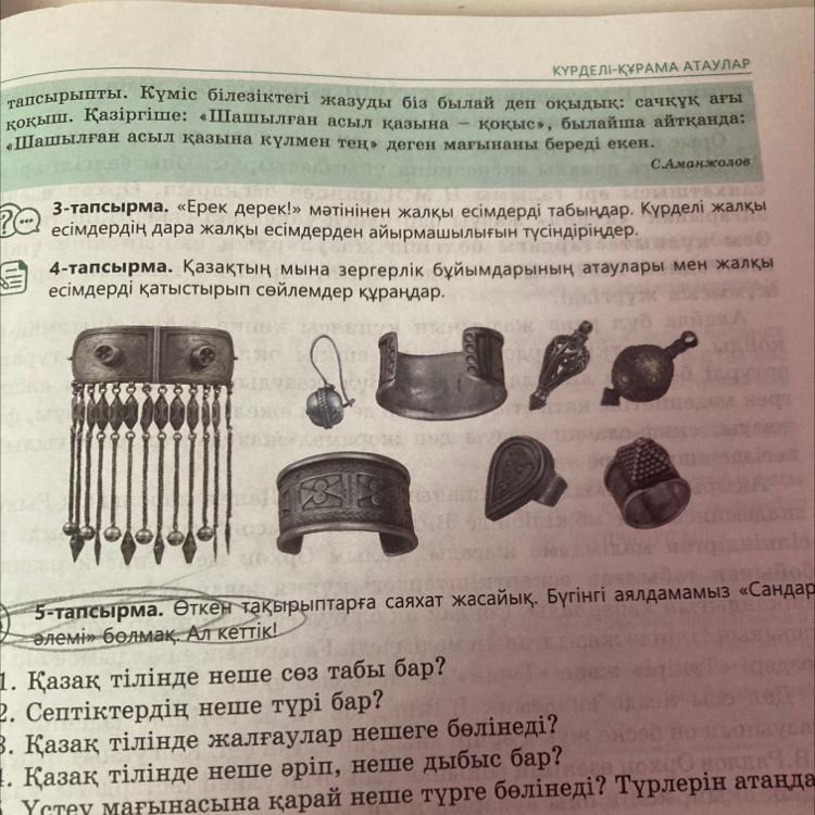 4-тапсырма. Қазақтың мына зергерлік бұйымдарының атаулары мен жалқы