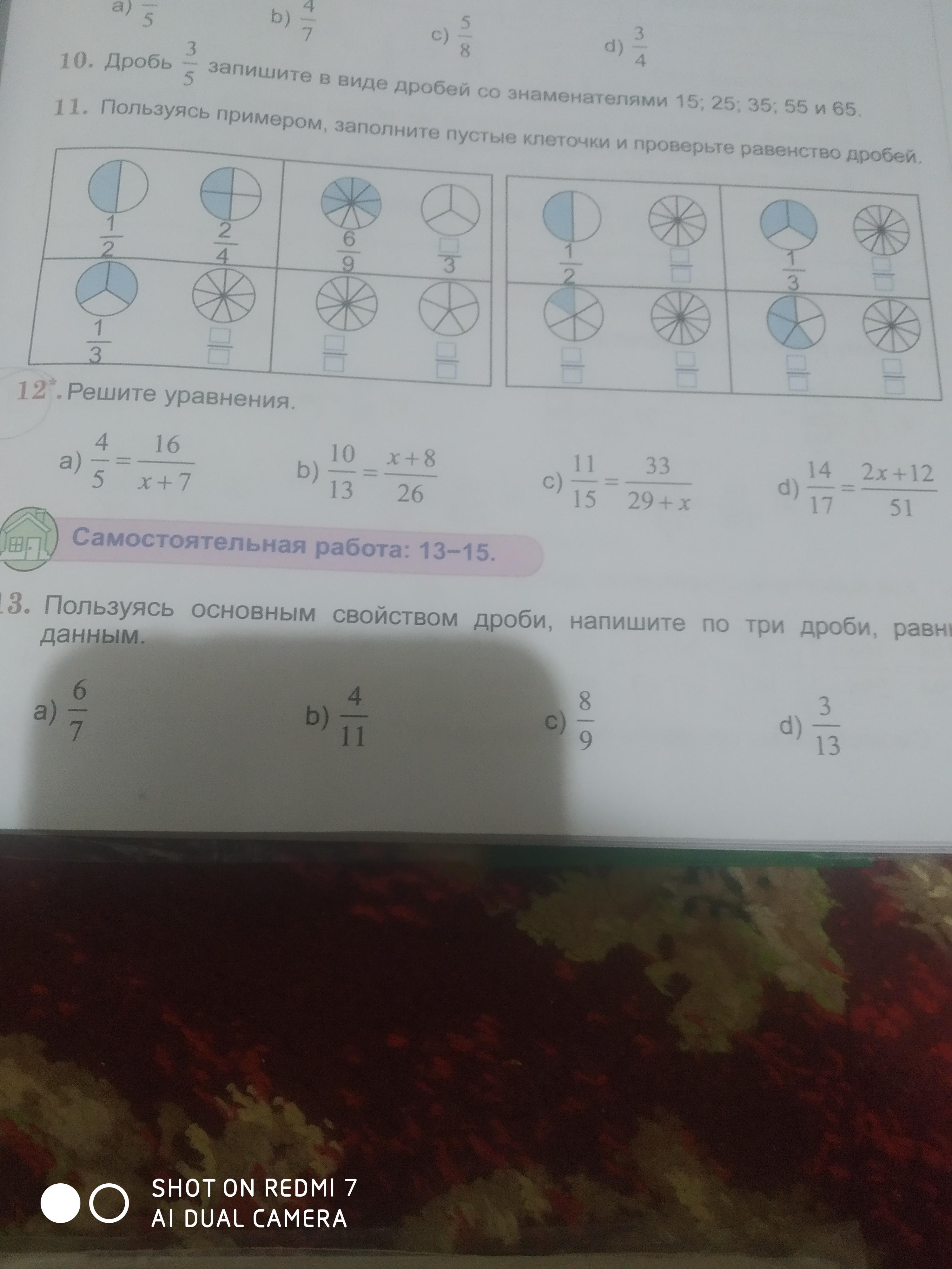 а 4/5=16/13+7 б 10/13=12+8/26 в 11/15=33/29+11