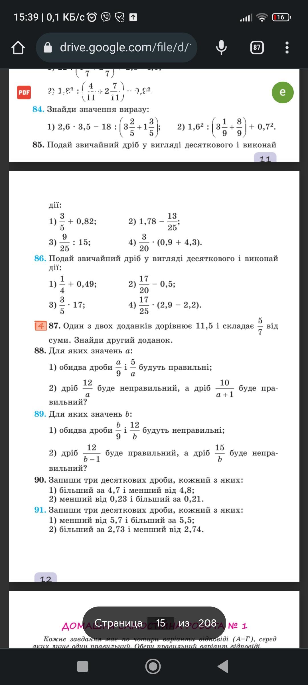 Відповідь: (88= 1) 5/9 2)5/9 90) 4,71; 4,73; 4,75) в номері 90 я зробив на вибір