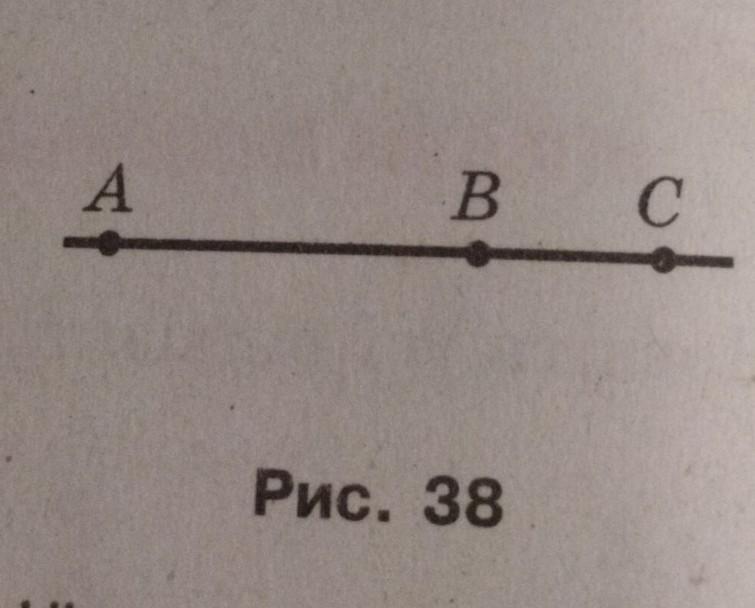 31. Точки А, В і С лежать на одній прямій (рис. 38). Які з наведених тверджень правильні: 1) AB+BC = AC; 2) AC+AB= ВС?