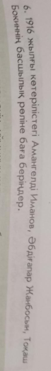 ұйқыдан, деген сөзінен нені байқауға болады? 1. Міржақып Дулатұлының күндіз күлкіден айырылды», 2. 1914-1918 жылдары болған Бірінші дүниежүзілік соғысқа қазақтардың қатысуы дұрыс па? 3. Қазақ халқы үшін 1916 жылғы ұлт-азаттық көтерілістің сондықтан халқымыздың Бірінші дүниежүзілік соғысқа қатысуы заңды». Бұл саяси салдары қандай? 4. «Қазақ халқы әлем тарихының құрамдас бөлігі, пікірге өз ойларыңды білдіріңдер. 5. Көтерілістің қозғаушы күшін атаңдар. -