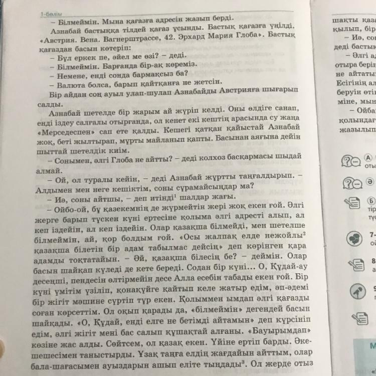 8-тапсырма. Мәтін мазмұнына сүйене отырып, ауыл адамдарының «жүзжылдық