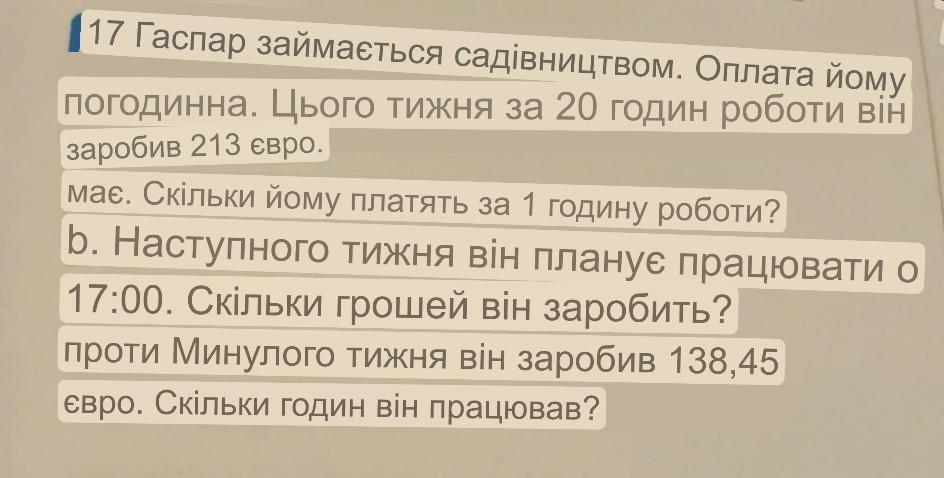 3)138,45/10,65=13год. працював минулого тижня
