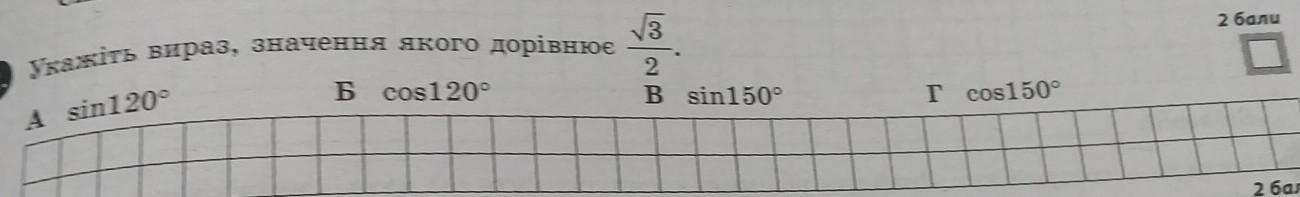 Таким чином, вираз, який дорівнює √3/2, - це sin150°.