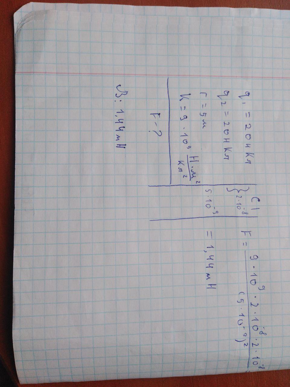 Дві маленькі кульки, кожна з яких має заряд 20 нкл, розташовані в повітрі на відстані 5 см одна від одної. Визначте силу електричного відштовхування кульок. Коефіцієнт пропорційності в законі Кулона дорівнює 9.109 Н·м2/Кл2.