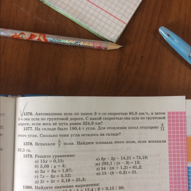 Автомашина шла по шоссе 3 ч со скоростью 65,8 км/ч, а затем 5 ч она шла по грунтовой дороге. С какой скоростью она шла по грунтовой дороге, если весь её путь равен 324,9 км?
