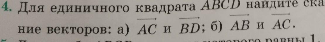 4. Для единичного квадрата ABCD найдите скалярное произведе- ние векторов: а) АС и BD; б) AB и AC.