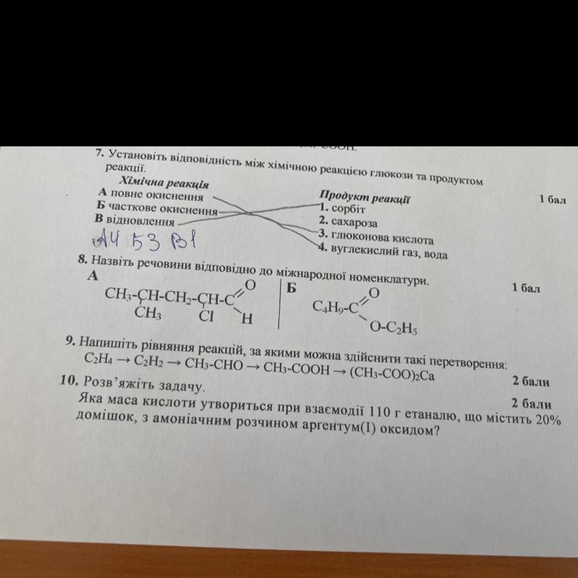 9. Напишіть рівняння реакцій, за якими можна здійснити такі перетворення: