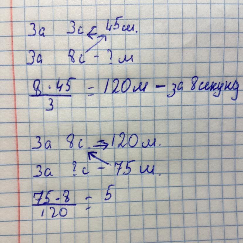 45 * 8/3 = 120м. (За 8 сек)