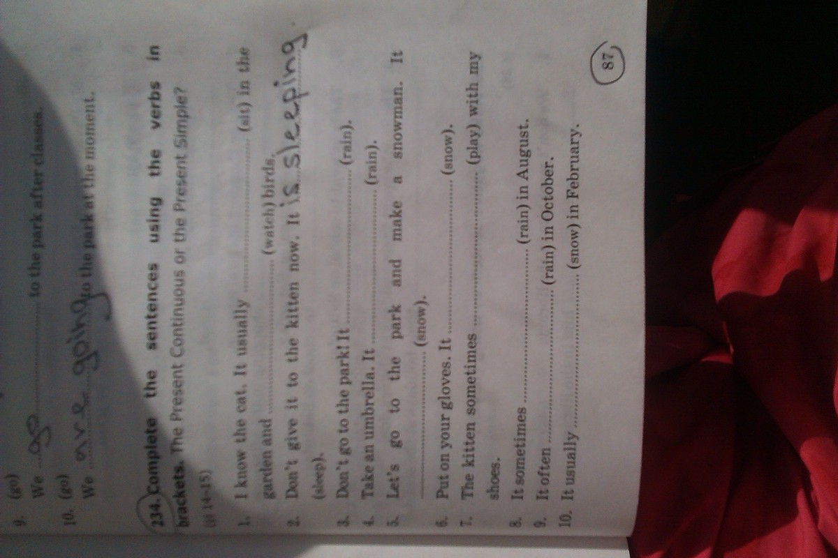 watches 2 is sleeping 3 is raining 4 is raining 5 is snowing 6 is snowing 7