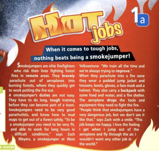 4 When smokejumpers parachute into a forest, they don't carry ......