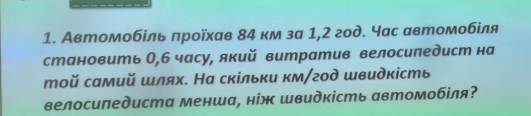 Швидкість велосипедиста: 84/2 = 42 км/год.