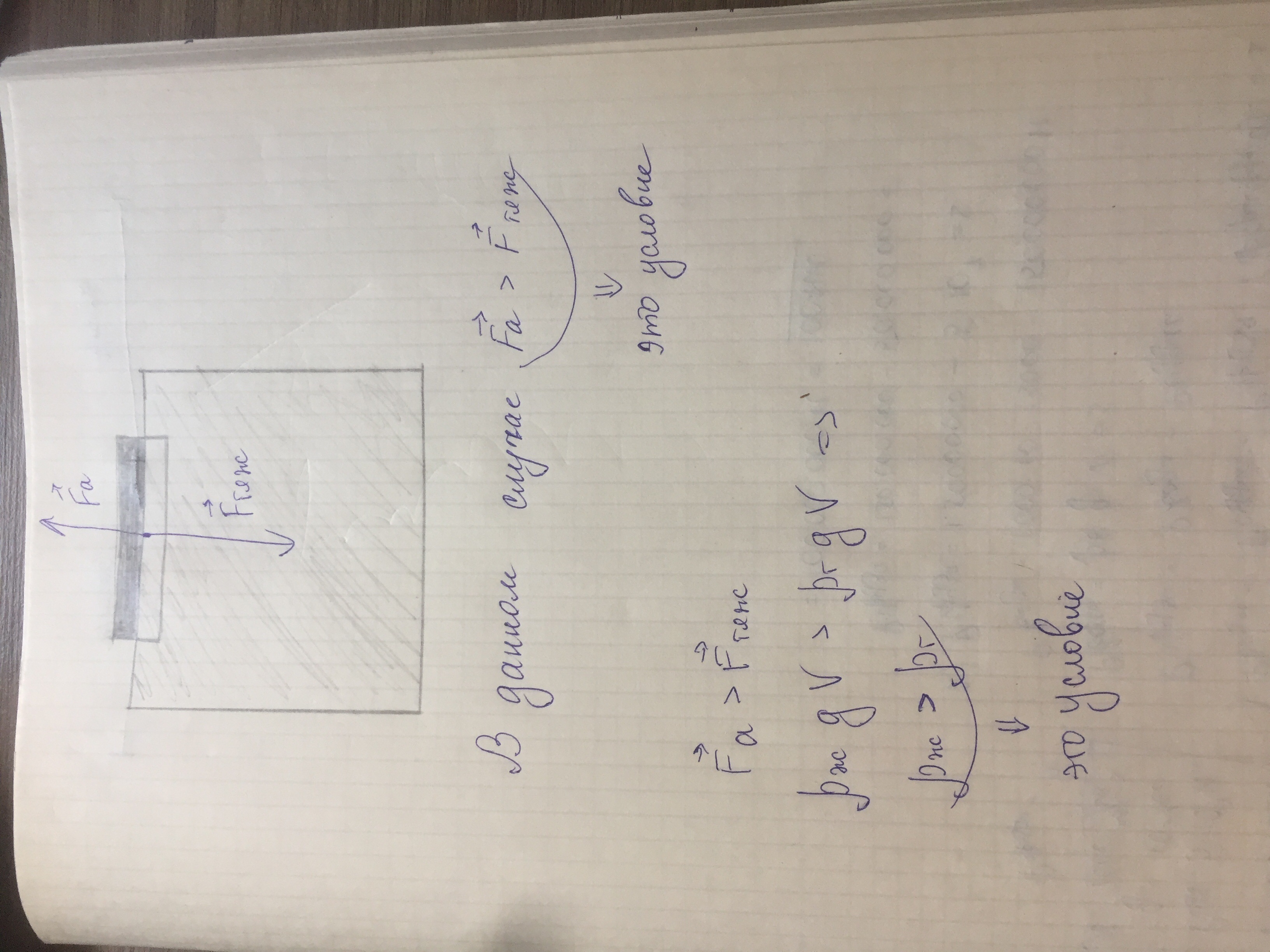 •1) условие: Сила Архимеда> силы тяжести