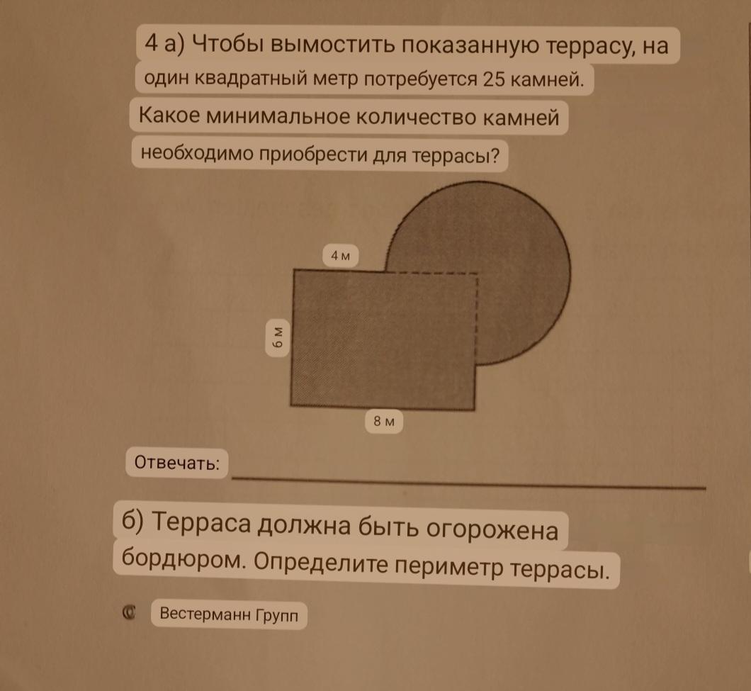 Sфигуры=S□+S◍=48+37,68≈85,68м²