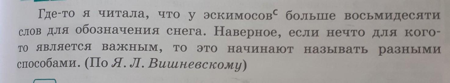 Где-то я читала, что у эскимосов (собирательное) больше восьмидесяти слов (конкретное) для обозначения (абстрактное) снега (вещественное). Наверное, если нечто для кого-то является важным, то это начинают называть разными способами (абстрактное). (По Я.Л. Вишневскому)