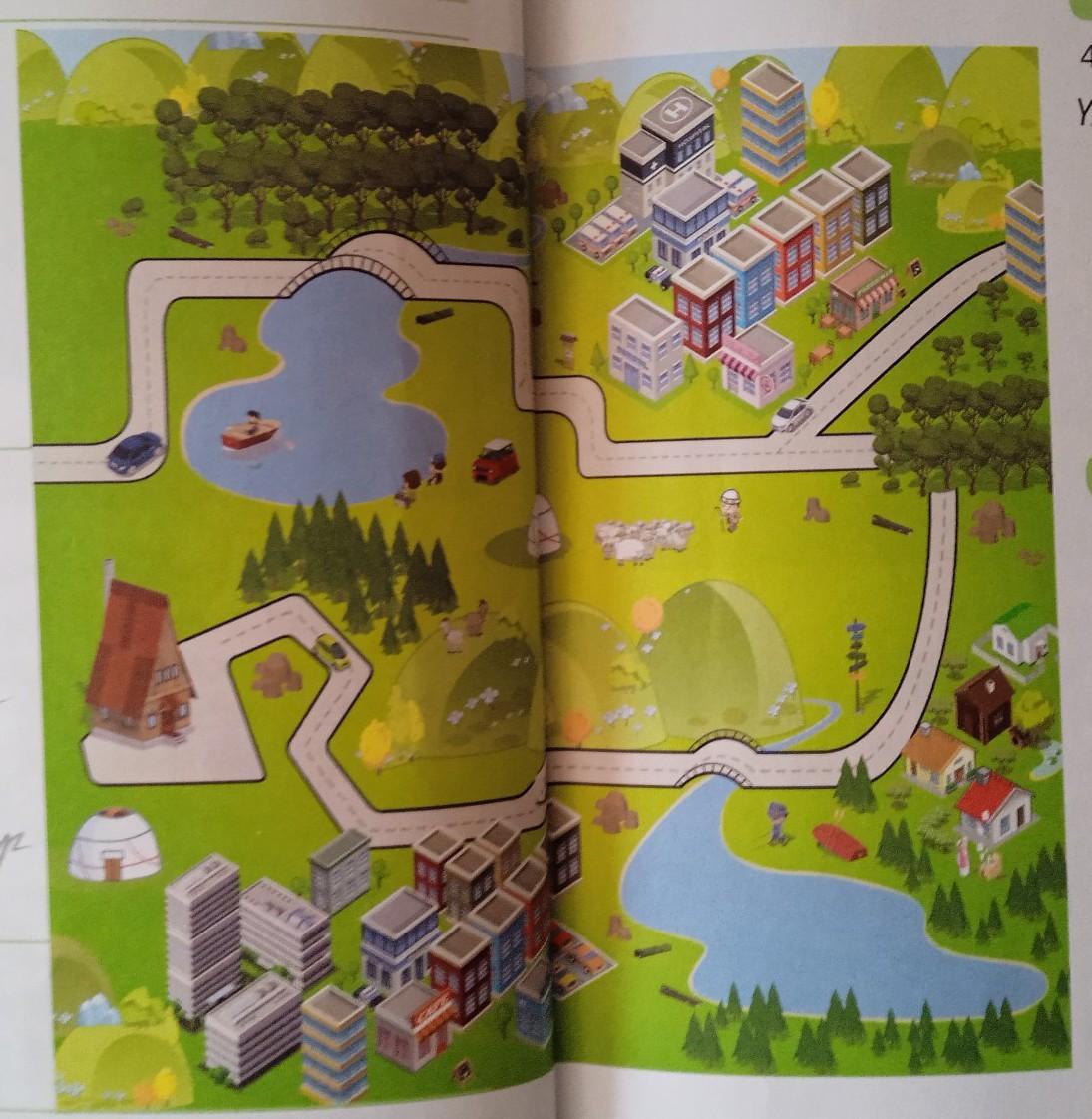 суретте мен екі қаланы, екі көлді, ортасында шағын таулар мен үлкен үйді, бір көлік пен киіз үйді көріп тұрмын, ал әр жерде ағаштар, жайылып жүрген қойлар мен жүзіп бара жатқан қайық