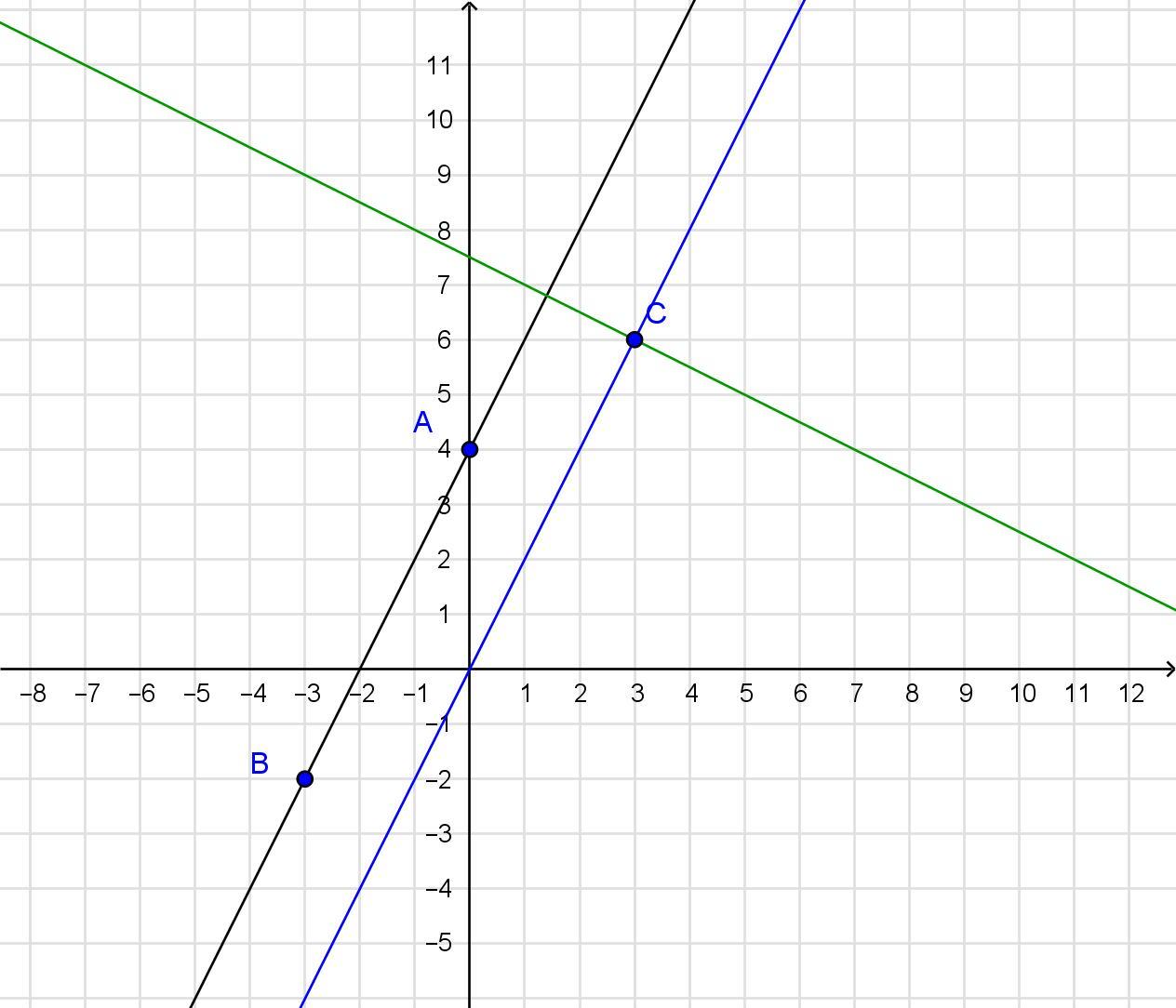 позначте на координатній площині точки А(0;4), В(-3;-2), С( 3; 6) проведіть пряму паралельну до прямої АВ і перпендикулярну до прямої АВ.