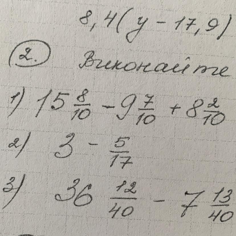 - =2 сімнадцять сімнадцятих - 5 сімнадцятих= 2 дванадцять сімнадцятих