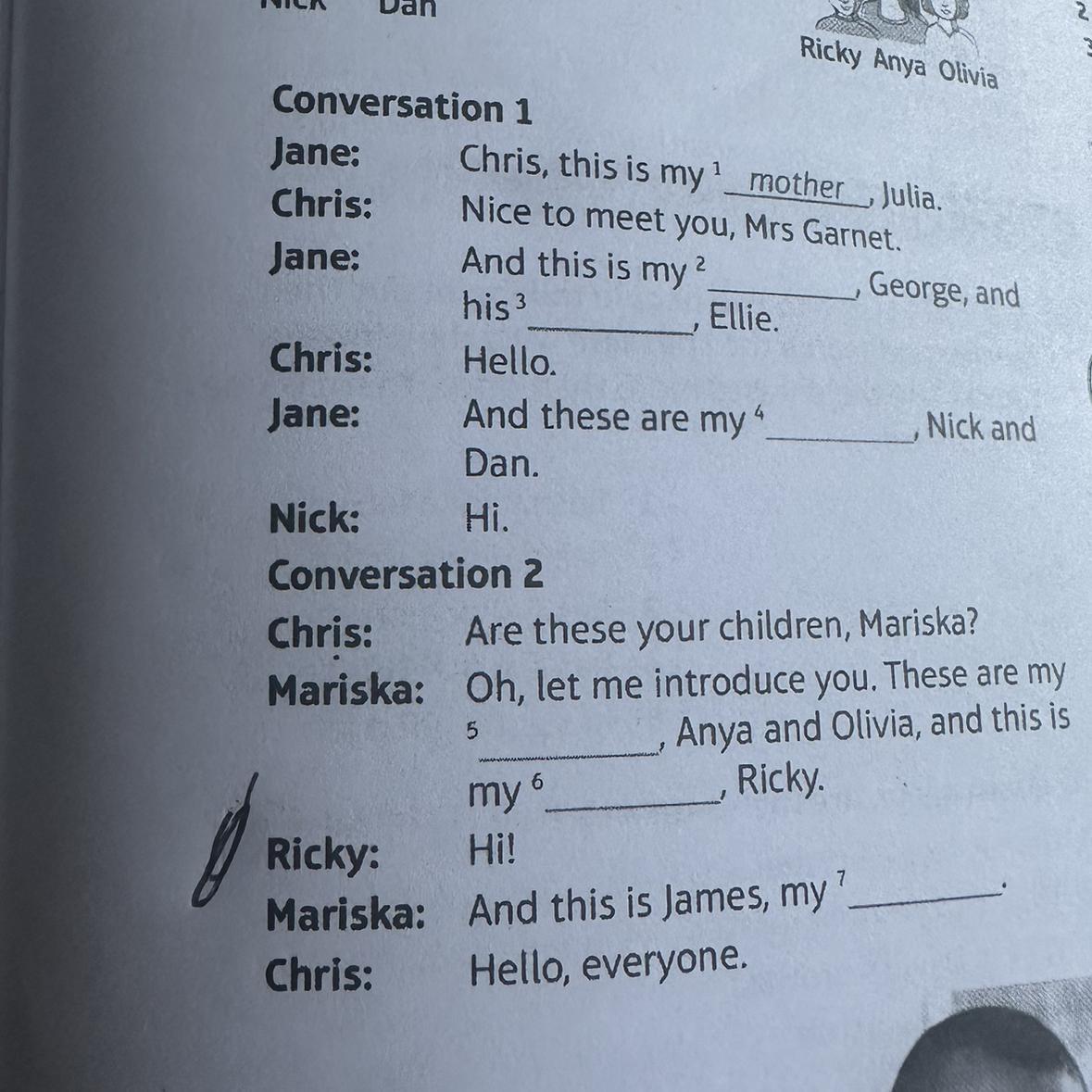 в задании должны быть слова которые нужно вставить, либо уже готовый текст по которому будет говорится кто кому кто. Откуда я должна знать кому приходится Джорджу Элли.