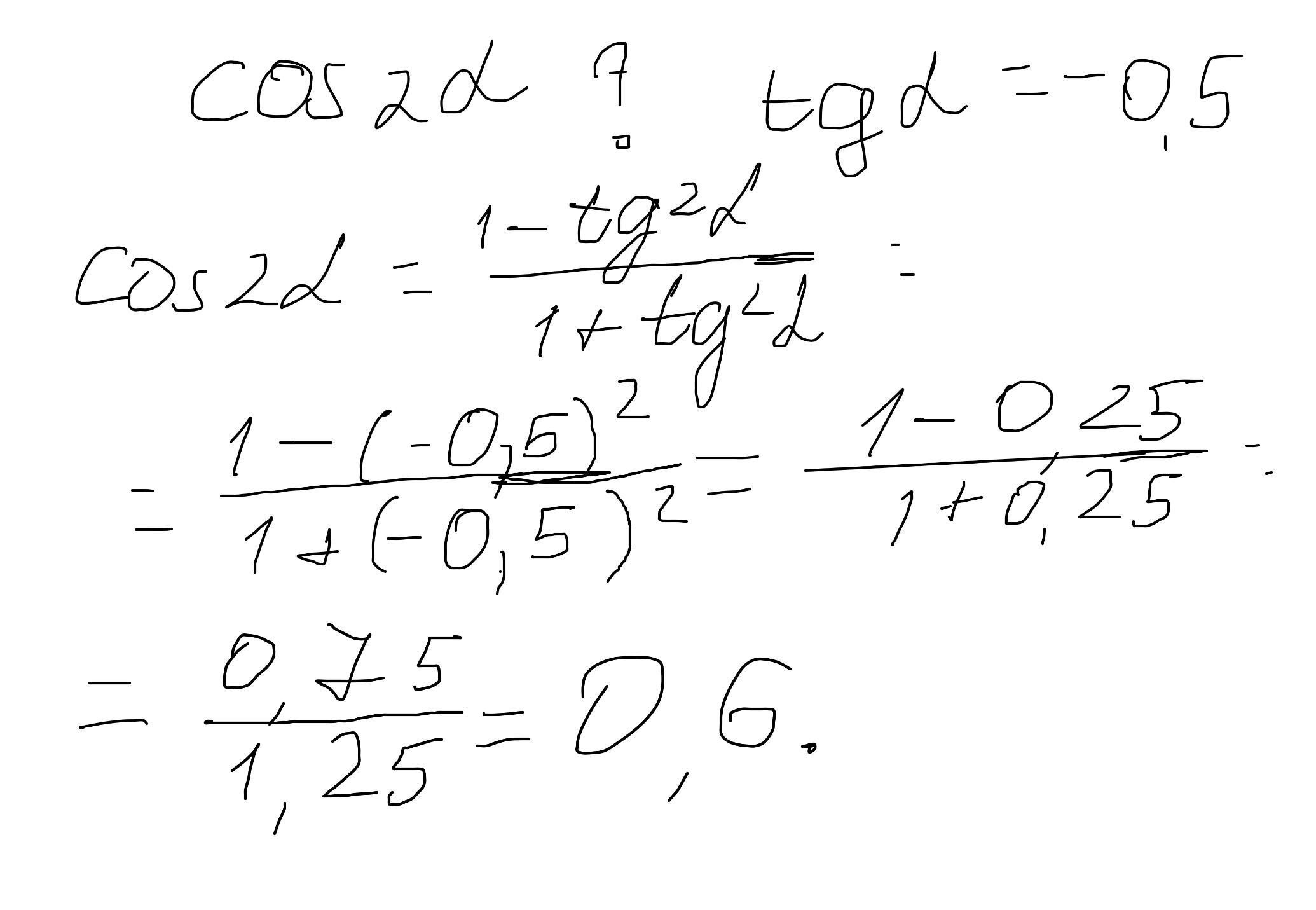 Здравствуйте, спасибо за задачу. В данном примере нам лучше всего знать формулу косинуса двойного угла через тангенс. Формула и решение прикреплено на фото ниже.