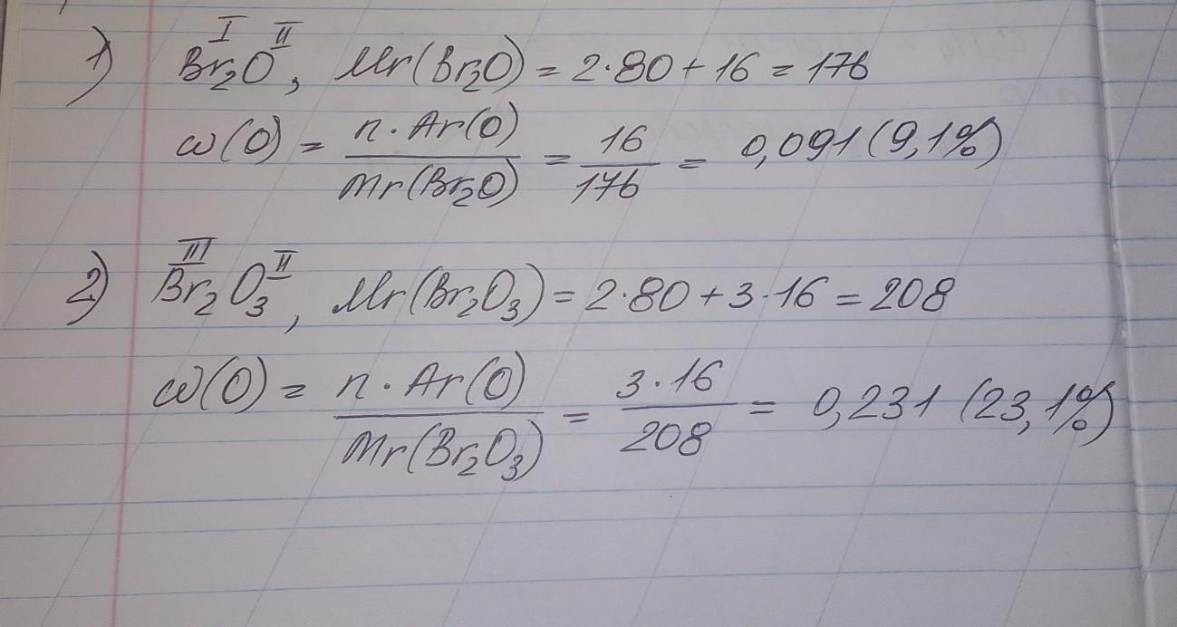 в оксиде брома (|||) массовая доля кислорода больше, чем в оксиде брома (|)