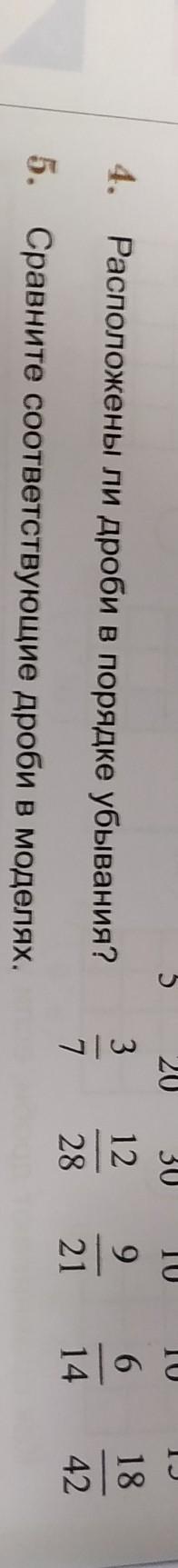 4. Расположены ли дроби в порядке убывания? 3/7 12/28 9/21 6/14 18/42 (С объяснением)