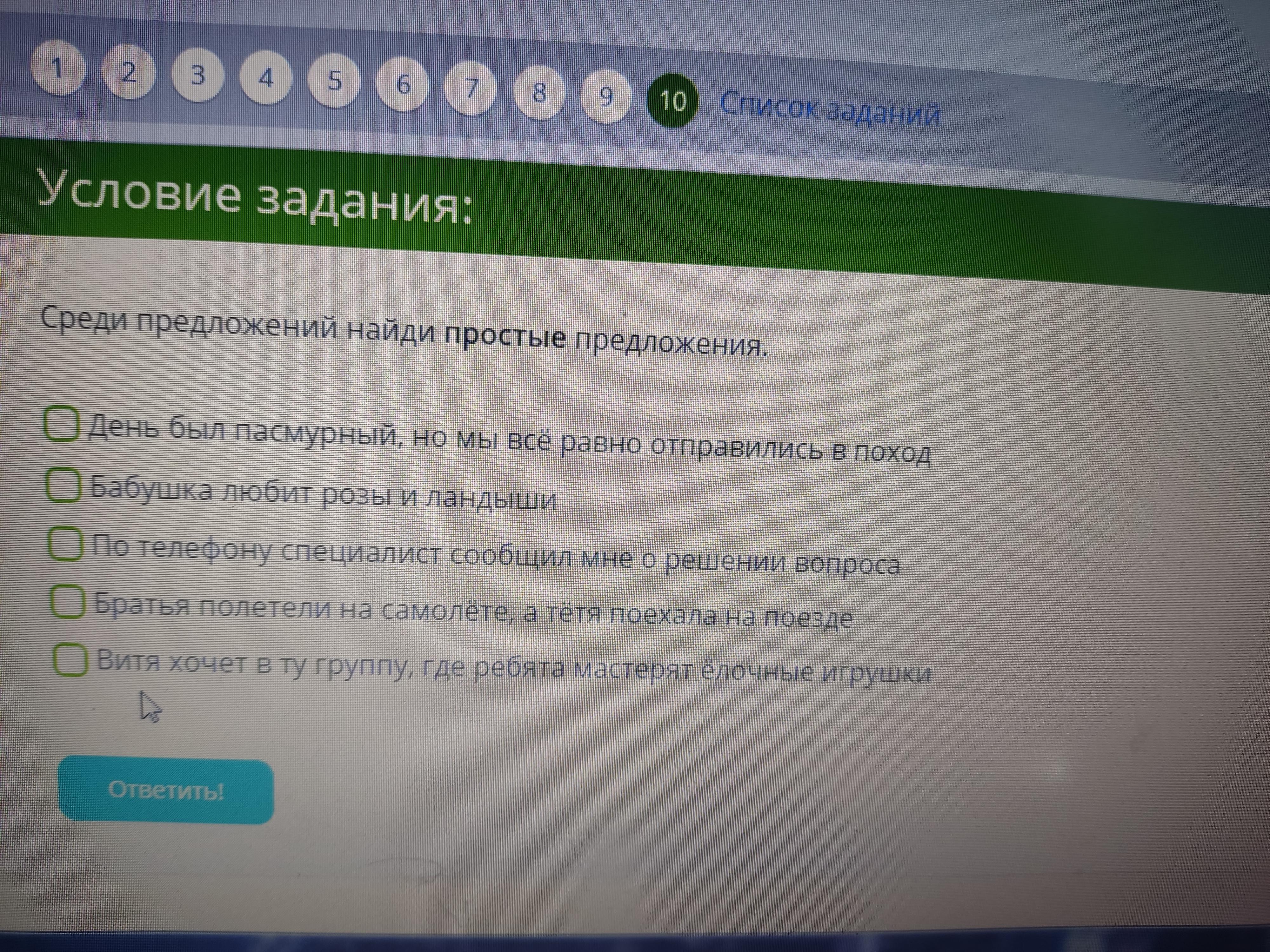 Объяснение: Простые предложения это те предложения в которых , есть 1 глагол ( Сказуемое ) и 1 существительное ( подлежащие )