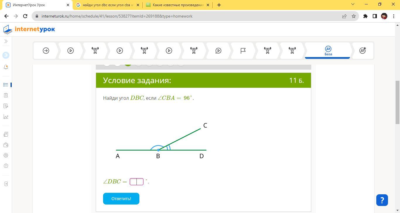 угол DBC=84°