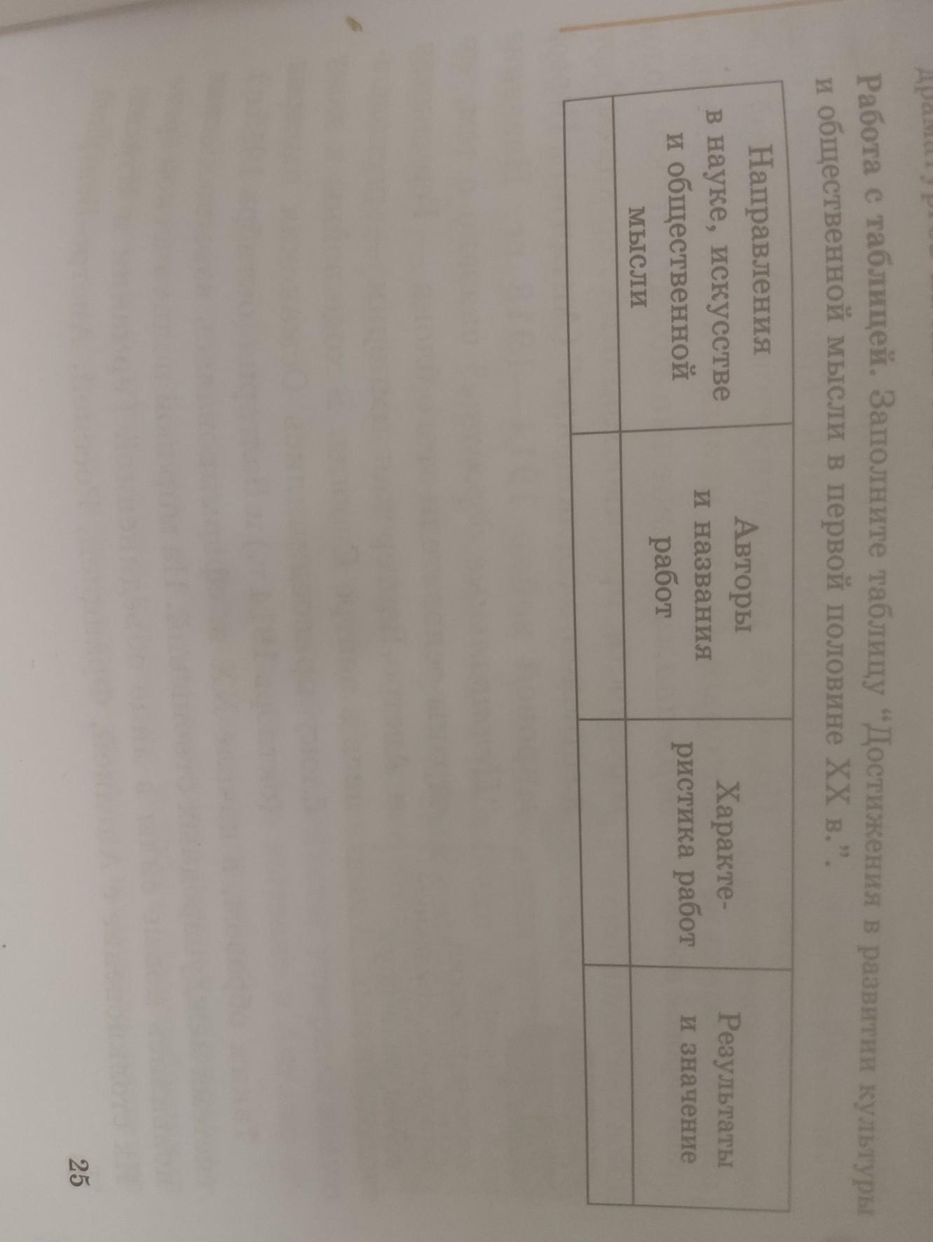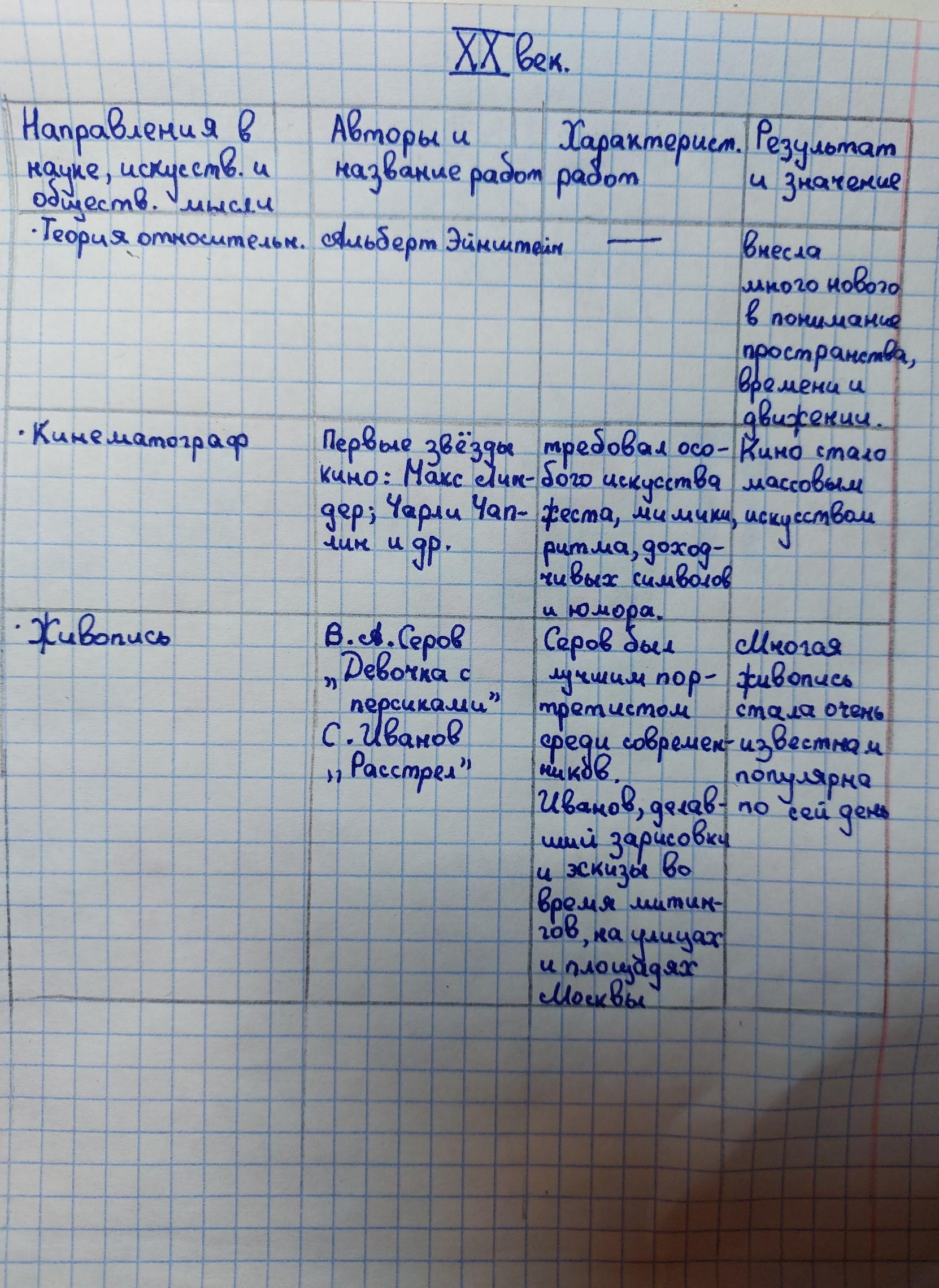 Работа с таблицей. Заполните таблицу "Достижения в развитии культуры