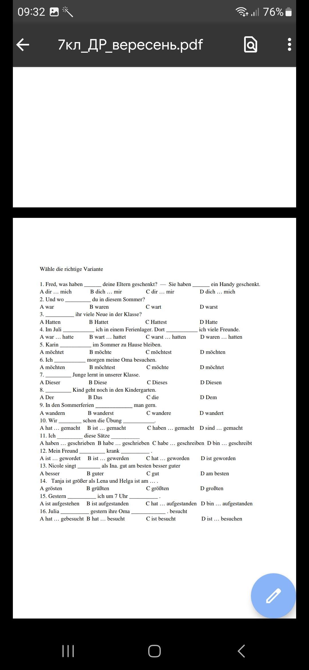 15)Gestern bin ich um 7 Uhr aufgestanden.