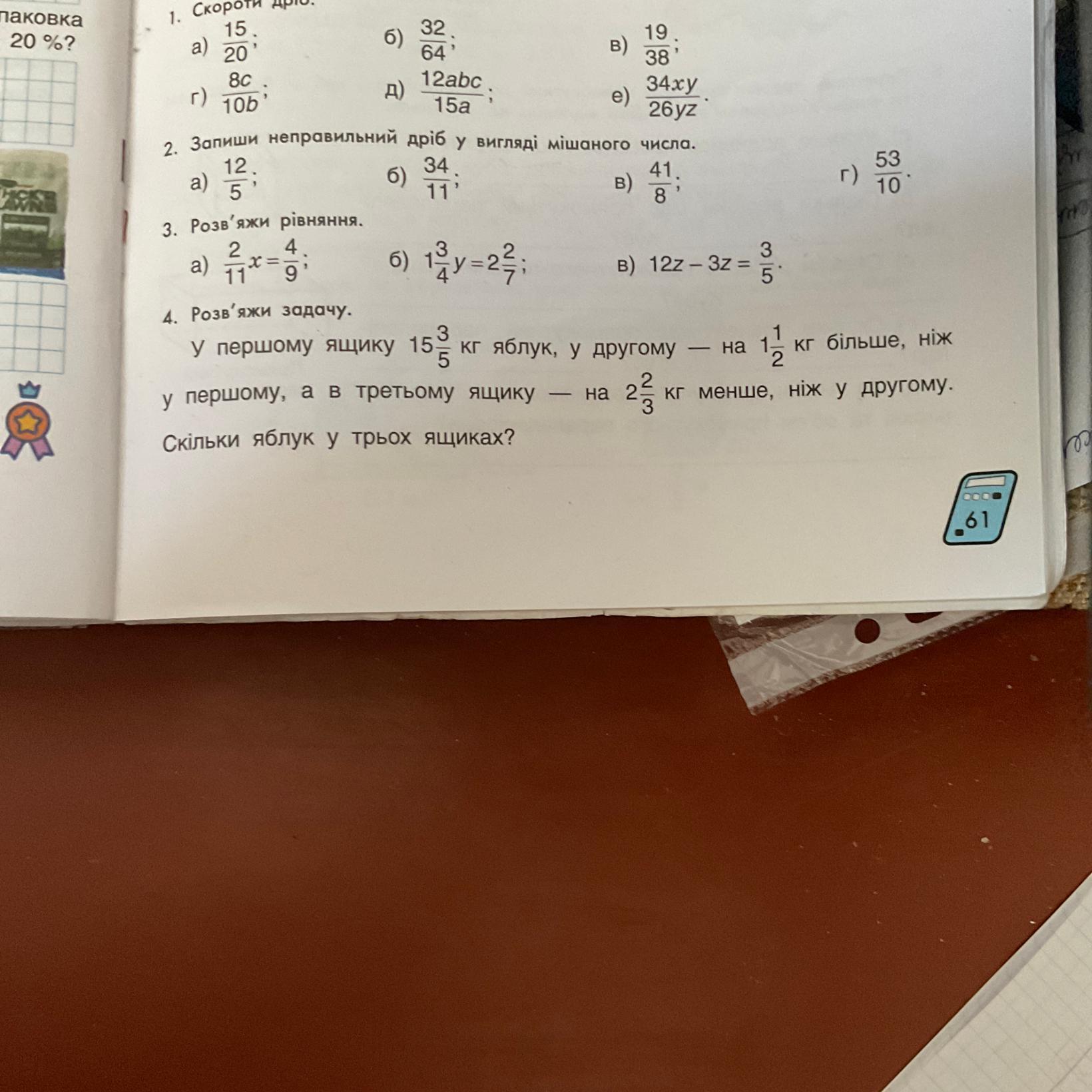 У першому ящику 15 3/5 кг яблук, у другому