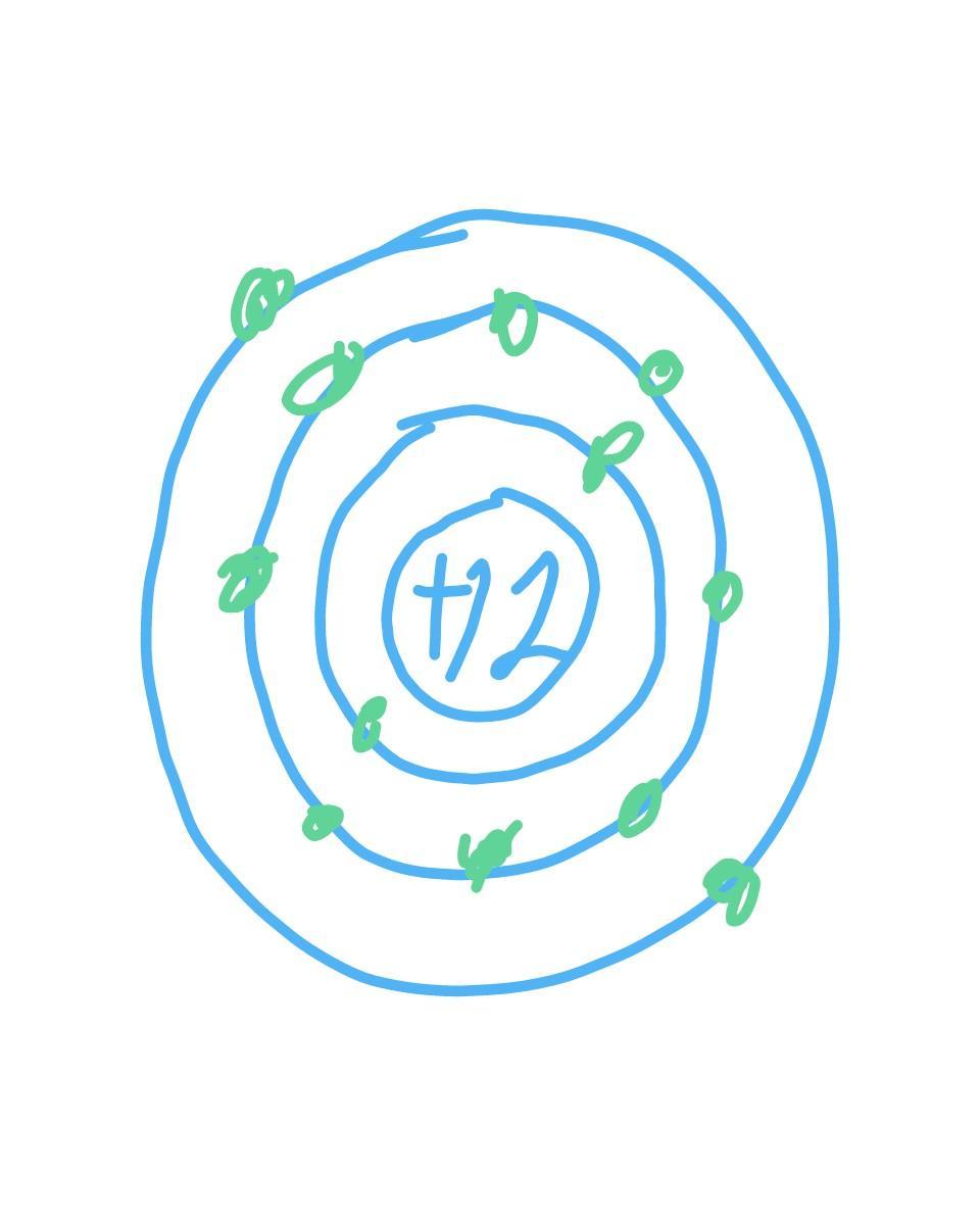 На приведённом рисунке изображена модель атома химического элемента 1) 2-го периода IIA группы 2) 3-го периода VIA группы 3) 3-го периода IIA группы