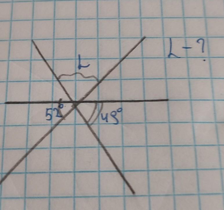 надо просто найти угол между известными углами, так как угол между и угол л вертикальные, следовательно равны