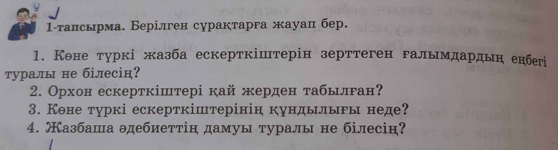 1-тапсырма. Берілген сұрақтарға жауап бер.