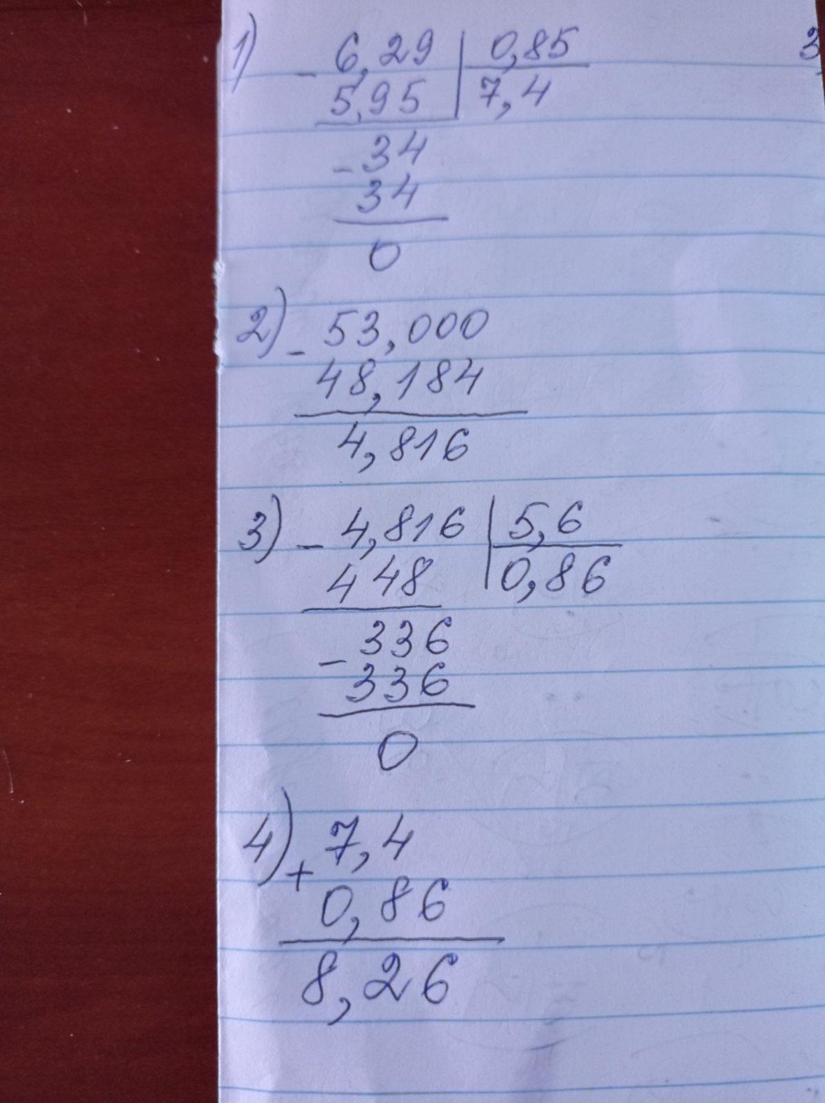 6,29 : 0,85 + (53 - 48,184) : 5,6 = 8,26