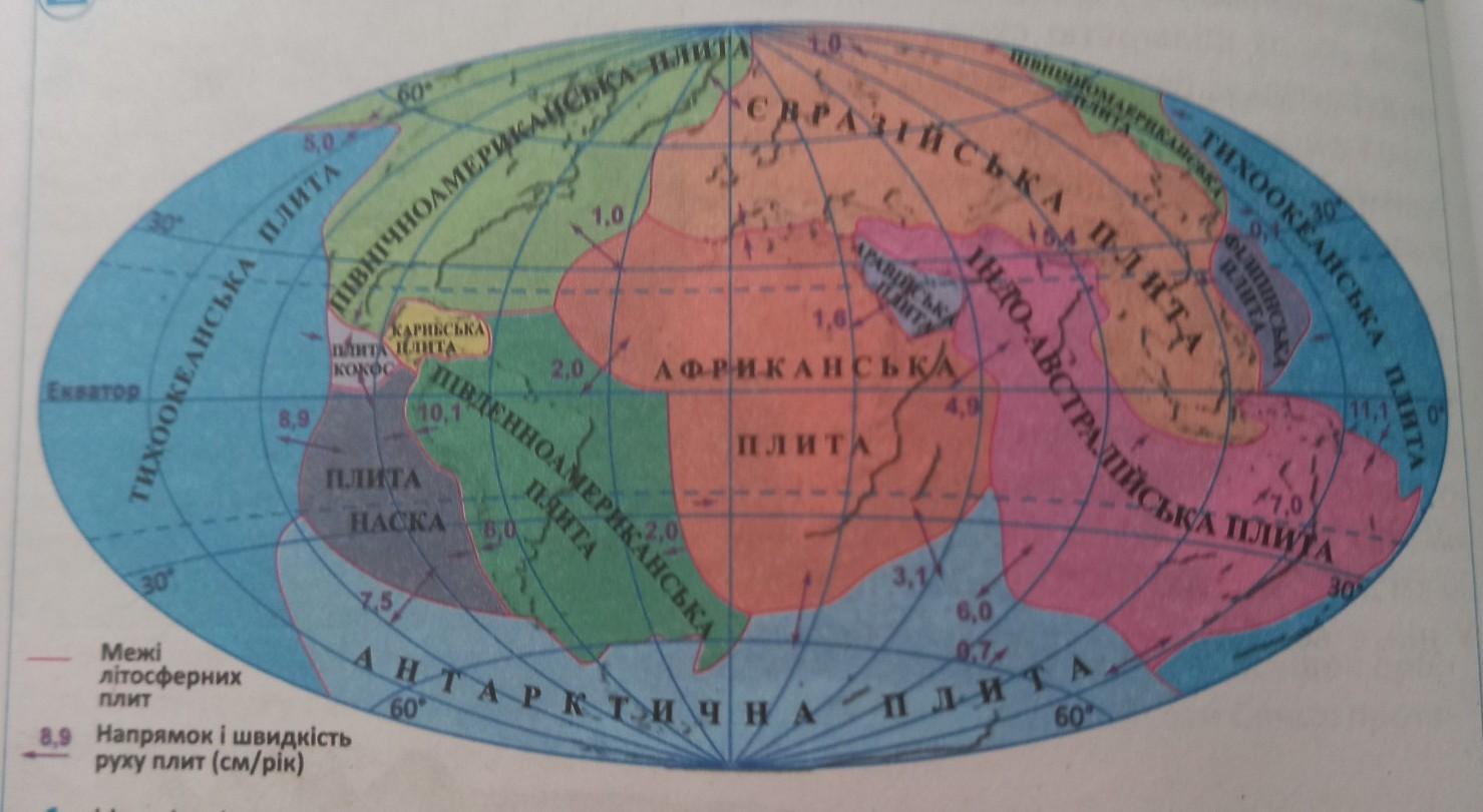 за картою літосферних плит поясніть у якому напрямку мандрують материки чи можливе утворення нових материків за умови теперішнього напрямку руху. срочноооо