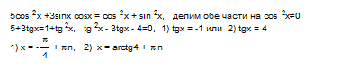 использовано основное тригонометрическое тождество и формула уравнения tgx=a