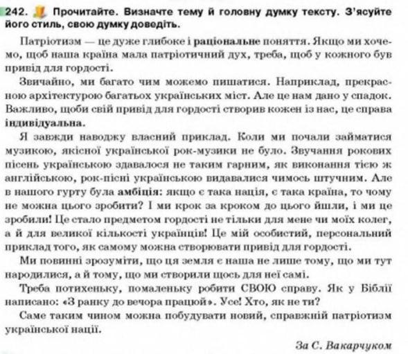Підготувати усний переказ тексту публіцистичного стилю з елементами роздуму (див. підручник на с.123, вправа 242). Складіть простий план до тексту