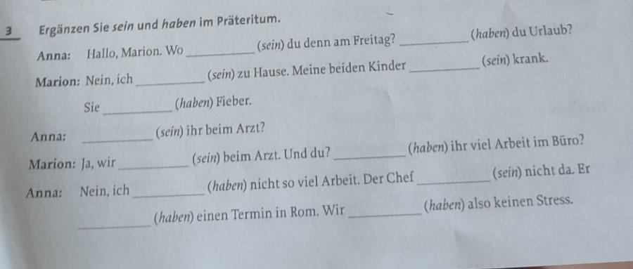 Anna : Hallo,Marion Wo warst du denn am Freitag ? Hattest du Urlaub?