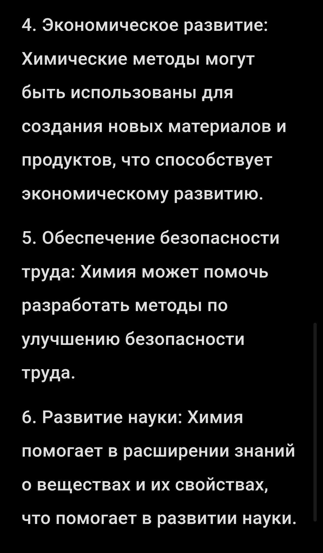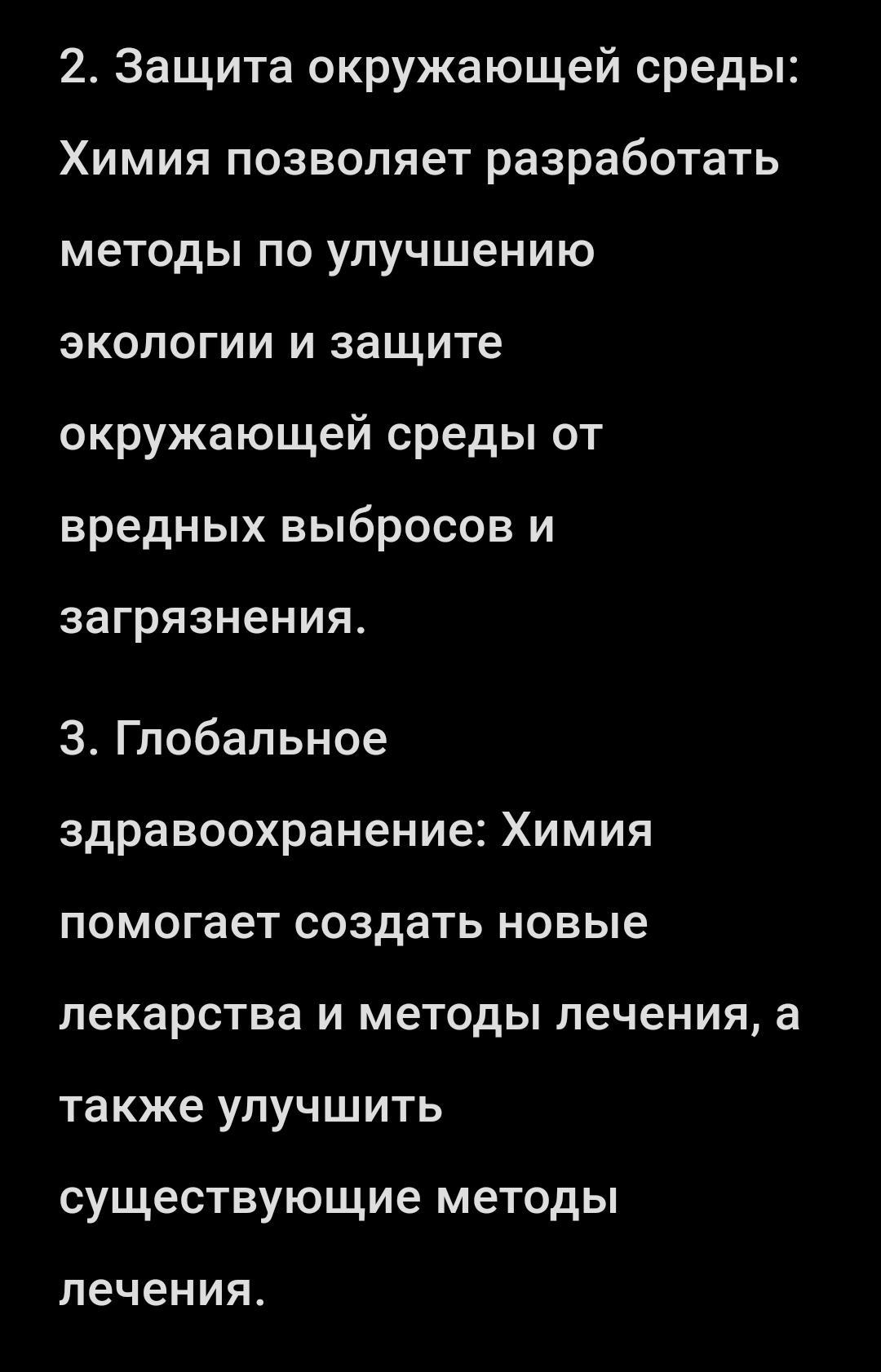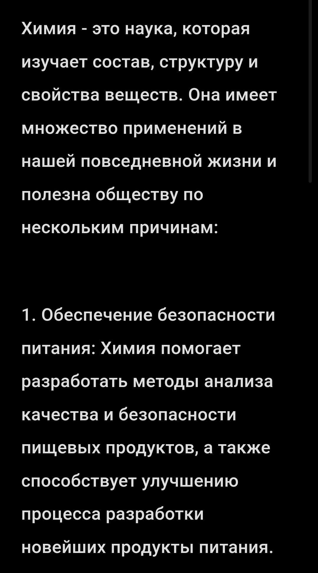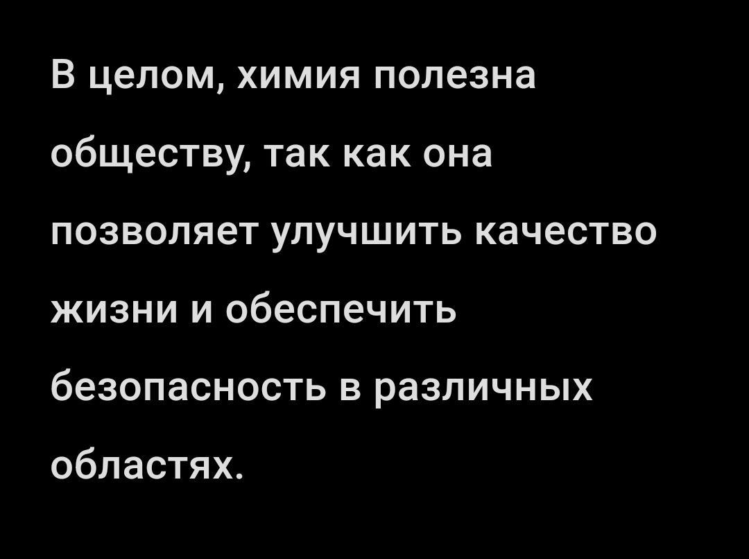Знания по химии нужны для развития химического производства, улучшения качества жизни людей. Грамотное использование химических знаний позволяет человечеству решать важнейшие проблемы современности — продовольственную, энергетическую, экологическую.