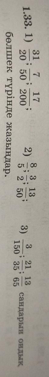 2) бір бүтін бестен үш; бір бүтін екіден бір; нөл бүтін жүзден жиырма алты;