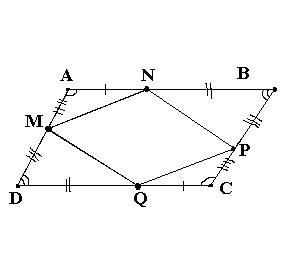 Точки M, N, P, Q лежат на сторонах AD, AB, BC, CD параллелограмма ABCD соответственно так что AM/AD = AN/AB = PC/BC = CQ/CD = 1/3. Докажите, что MNPQ - параллелограмм.