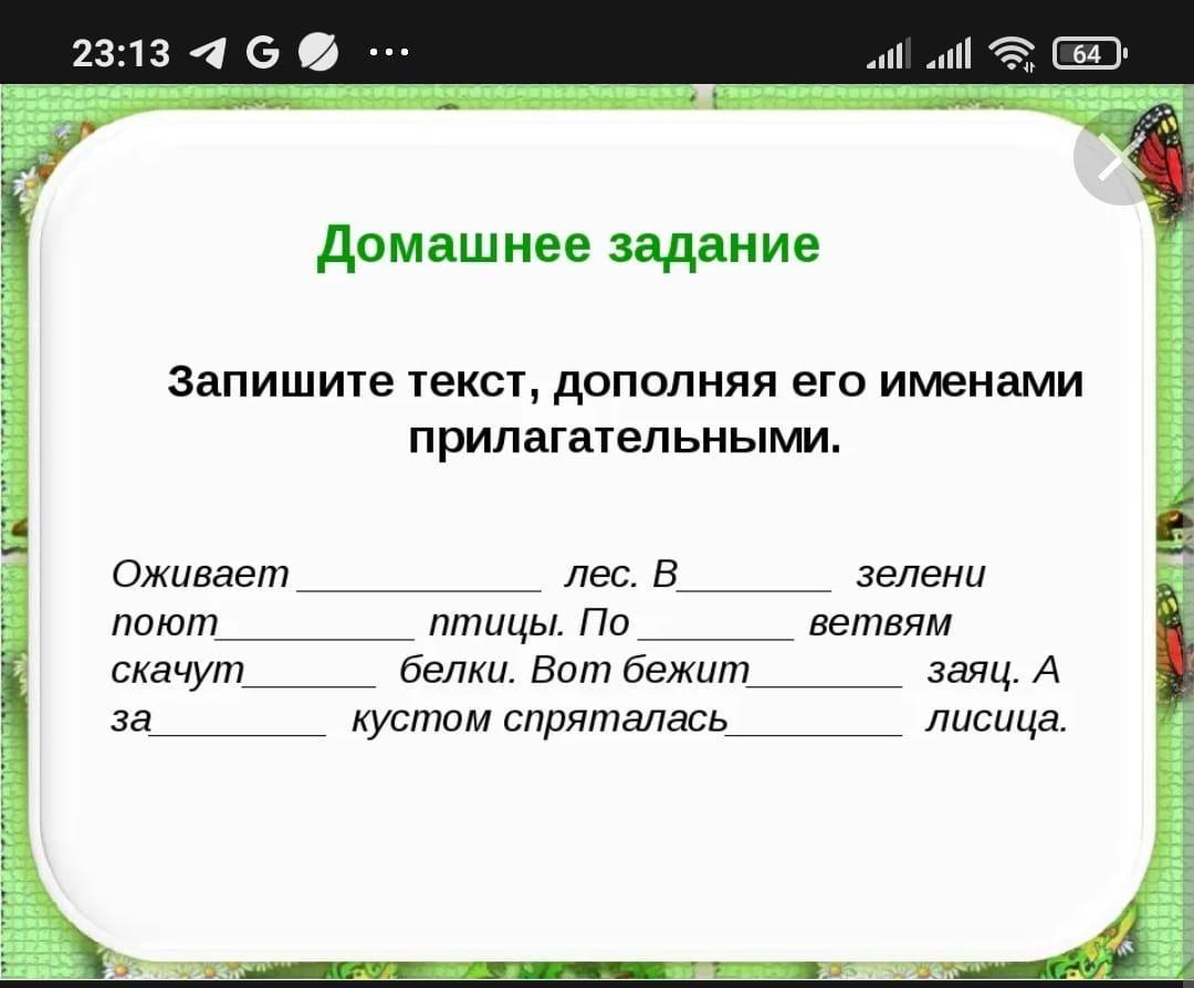 Оживает шумный лес. В мокрой зелени поют красивые птицы. По хрупким ветвям скачут быстрые белки. Вот бежит шустрый заяц. А за большим кустом спряталась хитрая лисица.