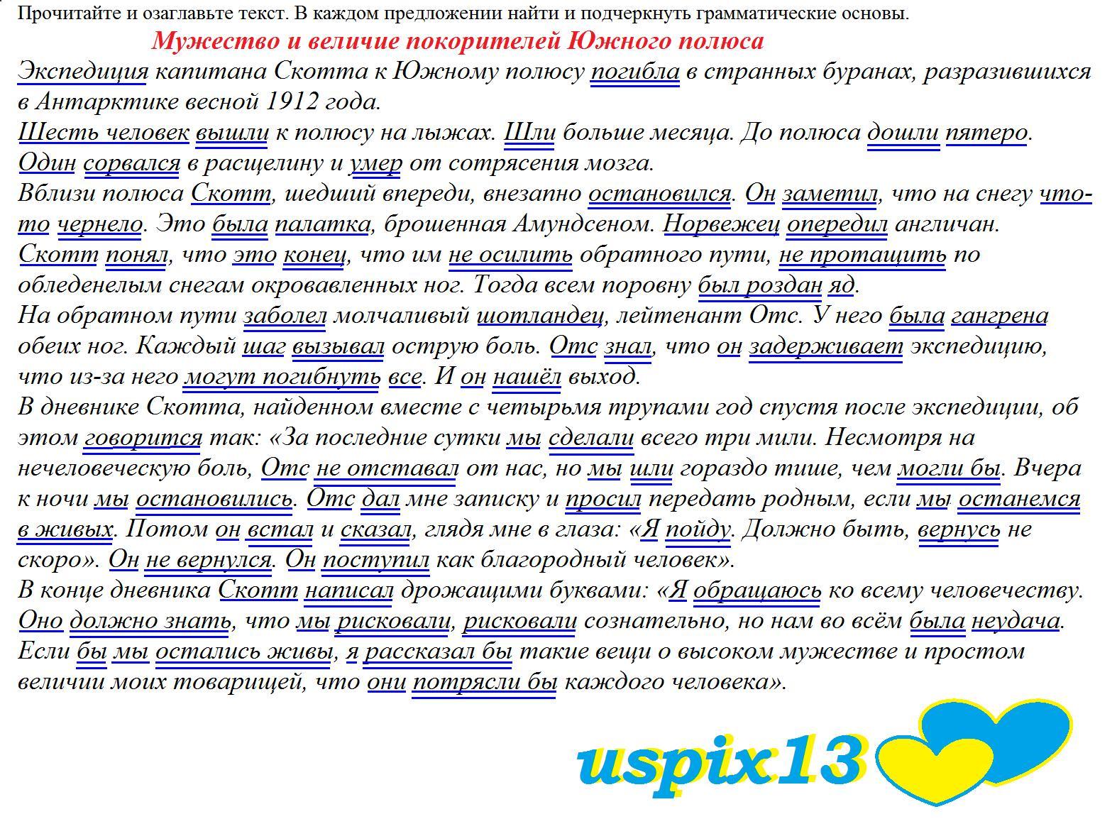 Прочитайте и озаглавьте текст. В каждом предложении найти и подчеркнуть грамматические основы.